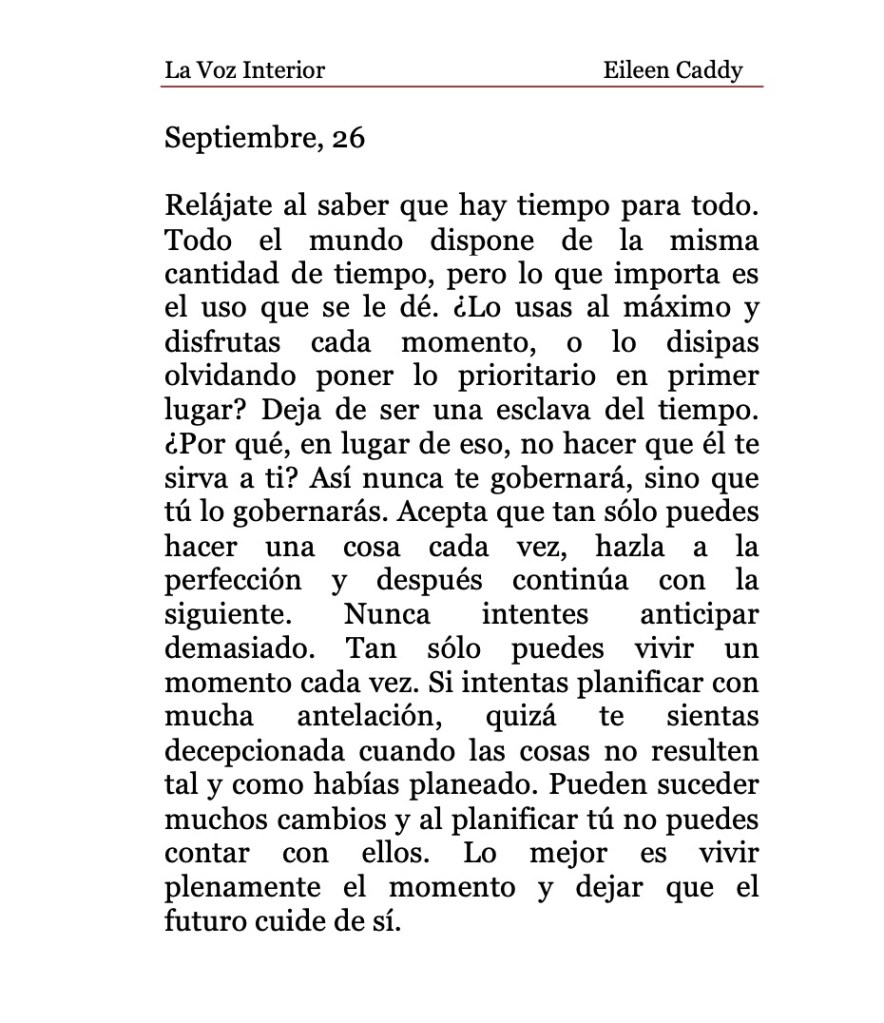«La Voz Interior» de Eileen Caddy, martes 26 de septiembre