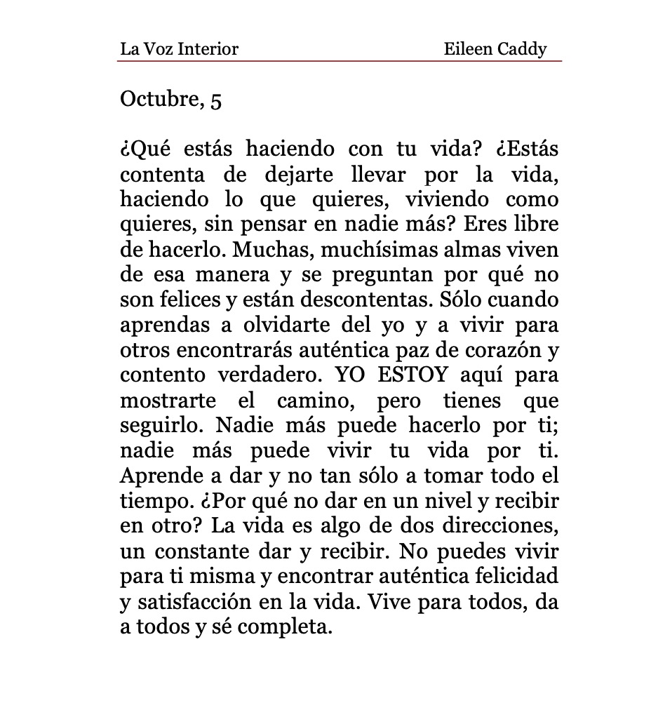 «La Voz Interior» de Eileen Caddy, jueves 5 de octubre