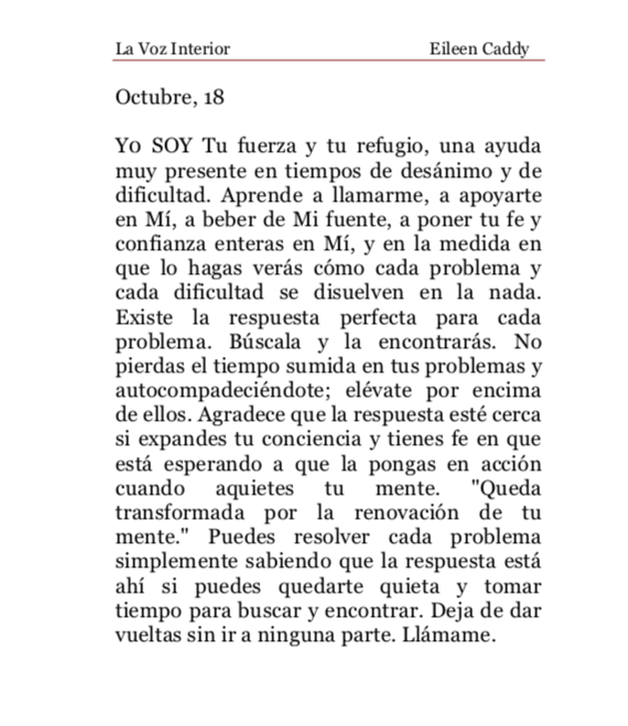 «La Voz Interior» de Eileen Caddy, miércoles 18 de octubre
