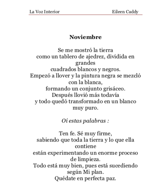 «La Voz Interior» de Eileen Caddy, miércoles mes de noviembre