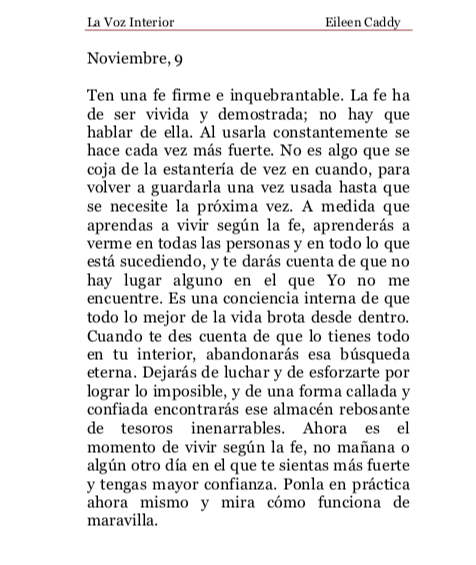 «La Voz Interior» de Eileen Caddy, jueves 9 de noviembre