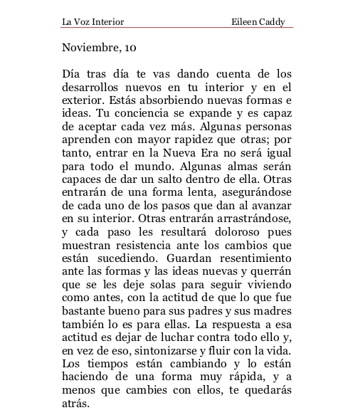 «La Voz Interior» de Eileen Caddy, viernes 10 de noviembre