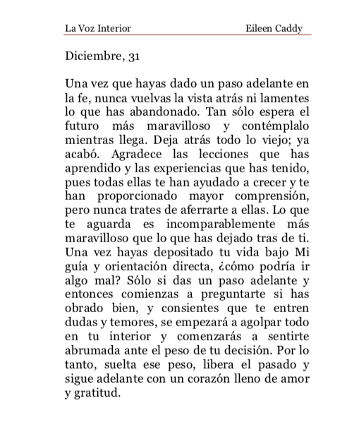 «La Voz Interior» de Eileen Caddy, domingo 31 de diciembre